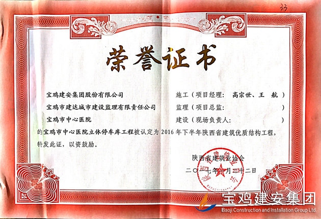 寶雞市中心醫(yī)院立體停車庫 省優(yōu)質結構工程