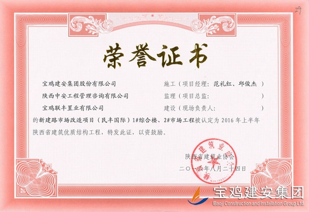 民豐國際 省優(yōu)質(zhì)結(jié)構(gòu)工程