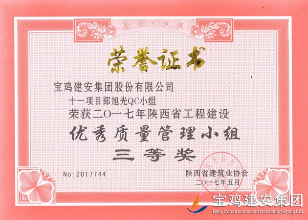 十一項(xiàng)目部旭光QC小組 優(yōu)秀質(zhì)量管理小組